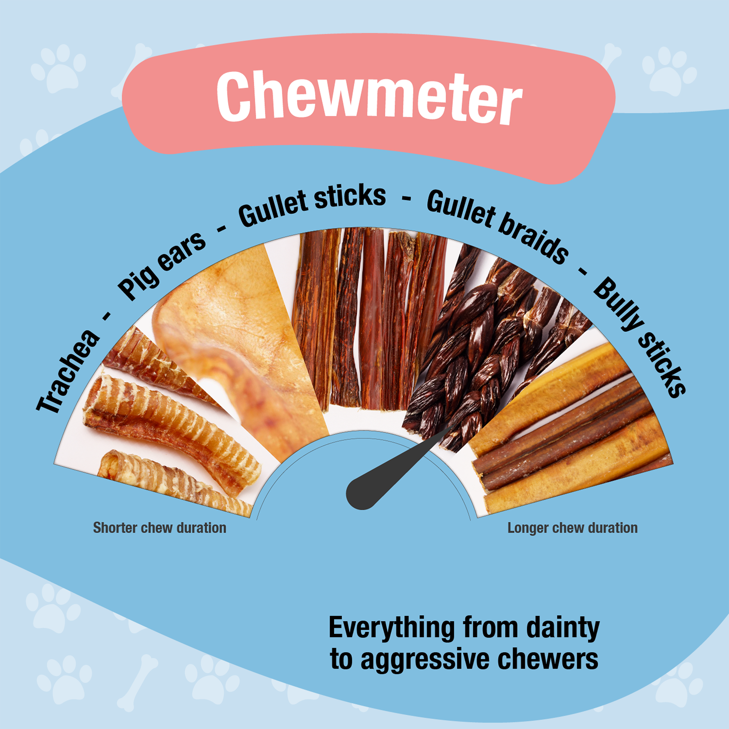 - Larga duración: Munchkin Chews Bully Sticks son de alta duración para darle a tu perro entretenimiento por largo tiempo.